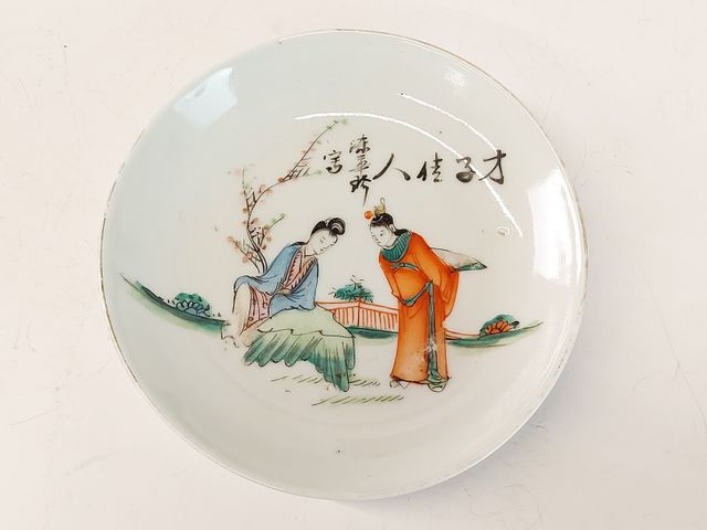 Lot # 39 - Deux assiettes chinoises en porcelaine peintes à la main, l'une avec sceau en-dessous, la plus grande mesurant 5.25 pouces de diamètre CANCELLED