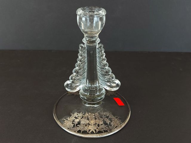 Lot # 32 - Lot de verrerie silverdeposit dont chandelier; vide poches mesurant 9 pouces et autres SOLD