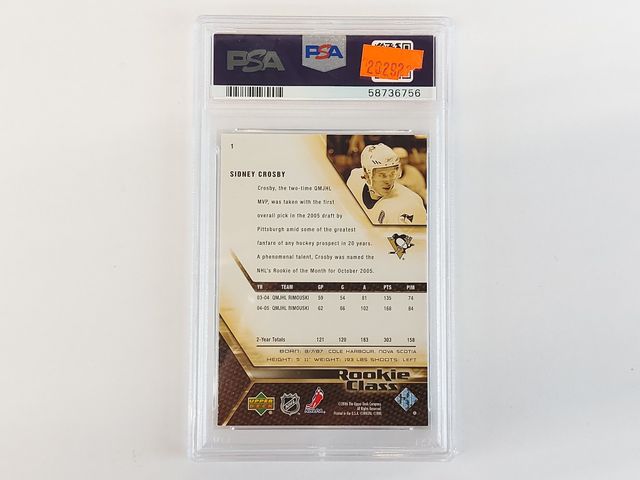 Carte de hockey Sidney Crosby Rooky Class Upper Deck 2005 gradée psa 9