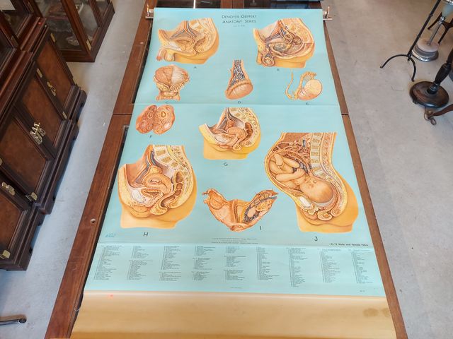 Lot # 135 - Affiche scientifique anatomique rétractable des années 50 faite en Allemagne par Desnoyer-Geppert - mesurant approximativement 77.5x47 SOLD