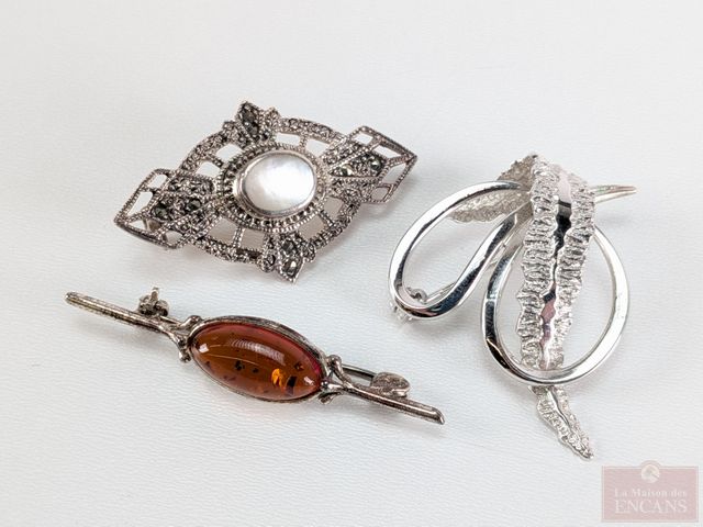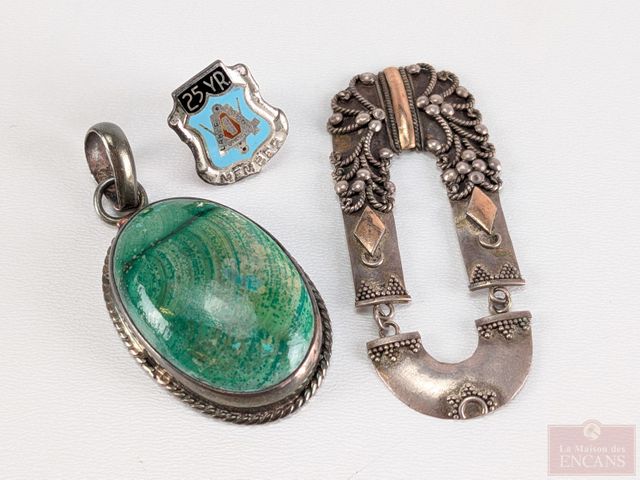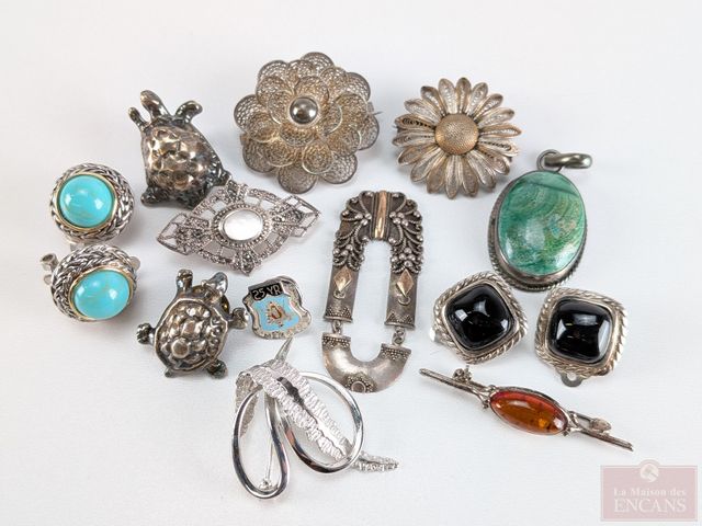 Lot # 219 - Lot de bijoux en argent comprenant broches, paires de boucles d'oreilles et pendentif, le plus grand mesurant 2 pouces de hauteur