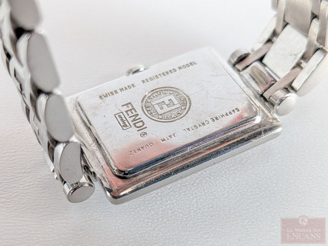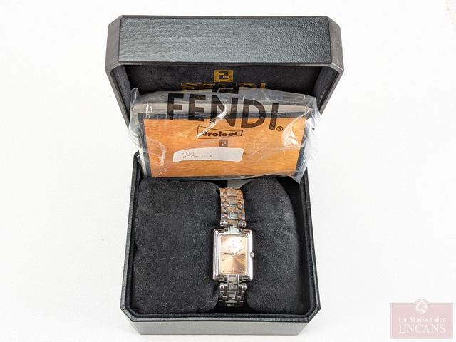 Montre Fendi mouvement suisse au quartz, mesurant 23 millimètres avec sa couronne, bracelet d'origine, dans son coffret avec ses papiers (besoin d'une nouvelle batterie)