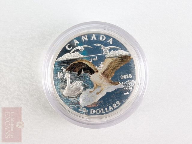 Lot # 200 - Pièce canadienne de vingt dollars 2018 en argent pur 9999 Arrivée d'une bernache du Canada en 3D, encapsulée, sans taxes