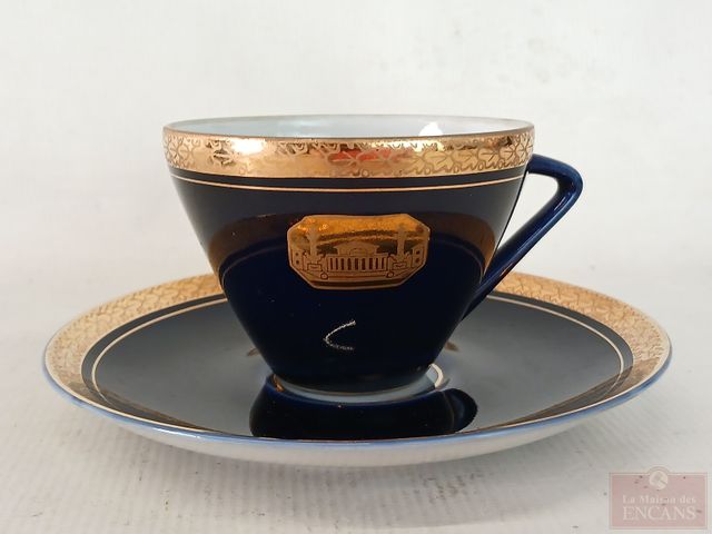 Lot # 139 - Ensemble de porcelaine russe couleur bleu cobalt avec dorure, comprenant tasses et soucoupes SOLD