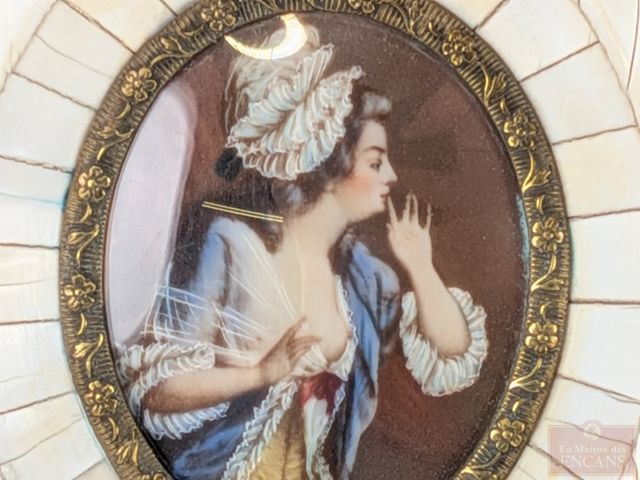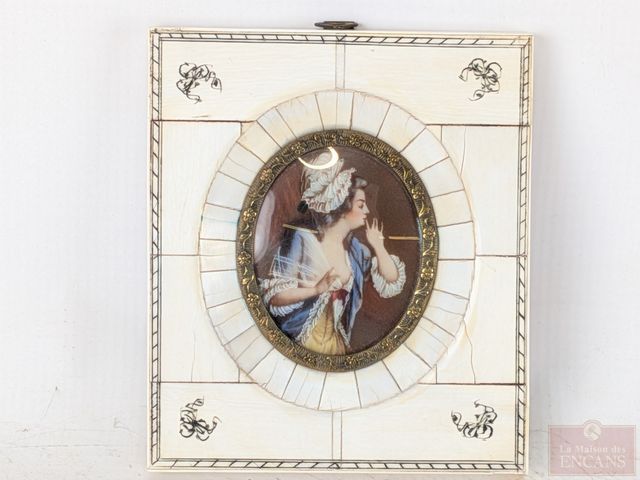 Peinture miniature sur ivoire dans un cadre en ivoire, datant du 19eme siècle et mesurant 4.75x4 pouces