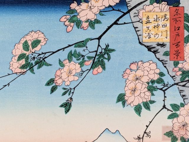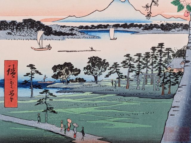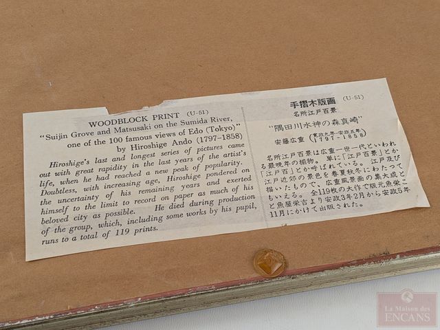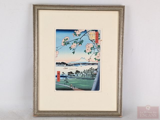 Lot # 125 - Utagawa HIROSHIGE - Estampe japonaise mesurant 9x6.5 pouces et titrée Sujin Grove and Matsusaki on the Sumida River SOLD