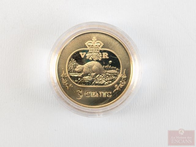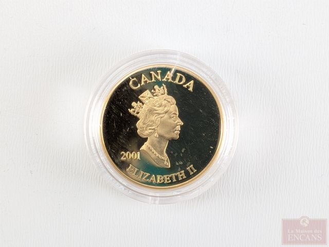 Lot # 209 - Pièce canadienne de trois sous 2001 en argent 925 plaquée or 24k, avec certificat SOLD
