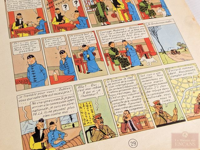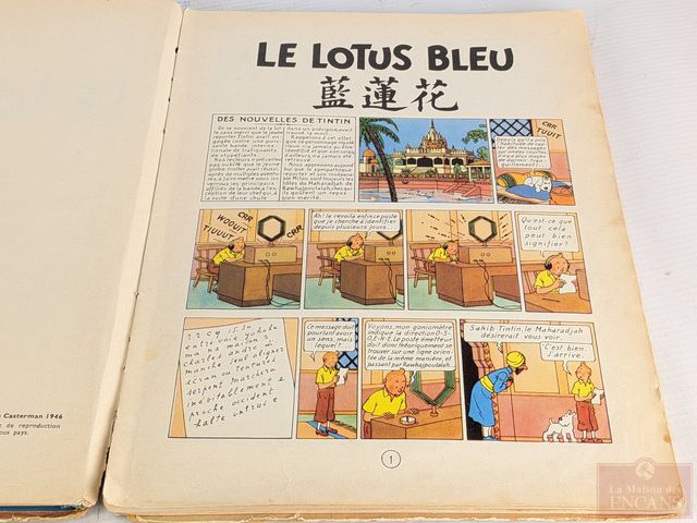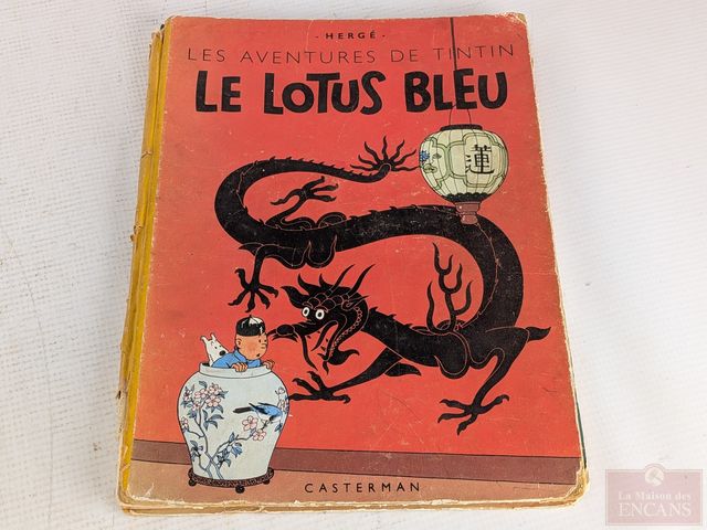 Bande-dessinée Tintin : le lotus bleu édition de 1951, mesurant 12x9 pouces