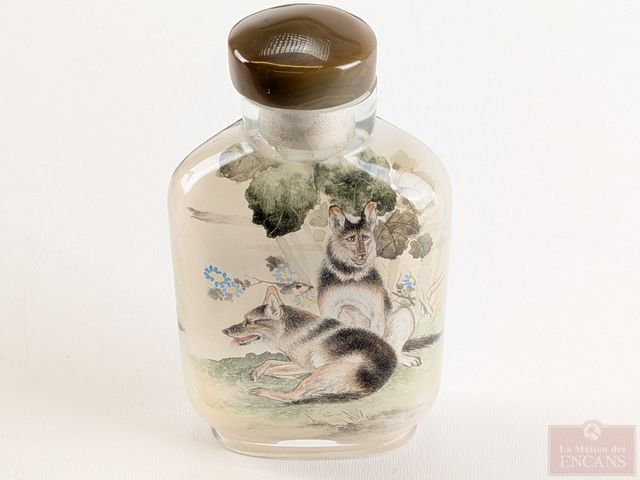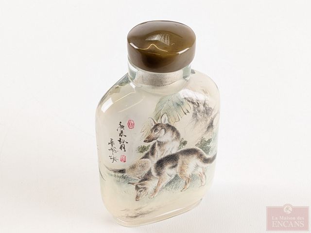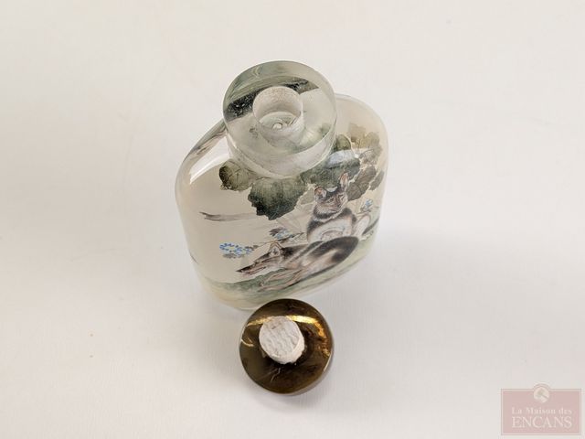 Lot # 214 - Bouteille à priser en verre, peinte à la main de l'intérieur et mesurant 3.5 pouces de hauteur SOLD