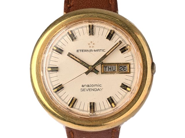 Montre Eternamatic Sevenday Anatomic avec date et jour, mouvement automatique mesurant 40.9 millimètres avec sa couronne, fonctionnelle