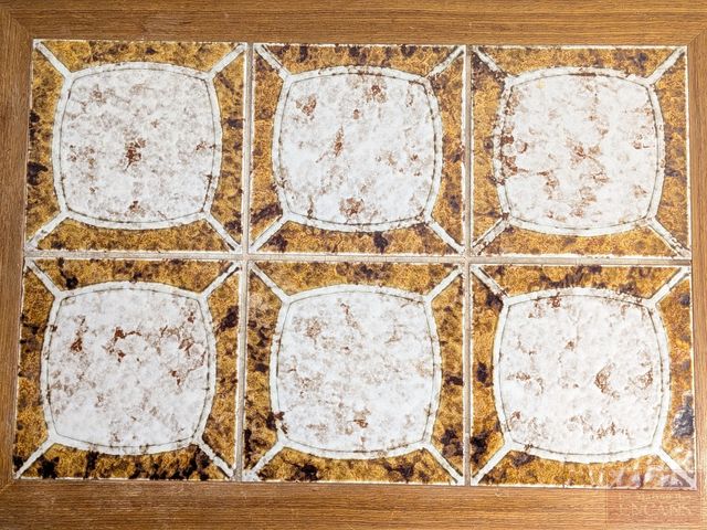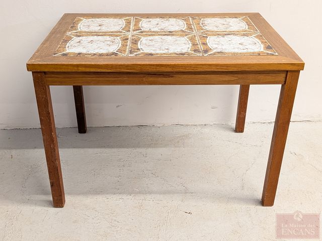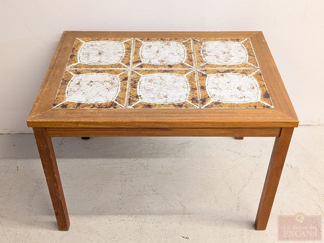 Lot # 185 - Table mid-century en bois à dessus de céramique, mesurant 19x20x28 pouces SOLD
