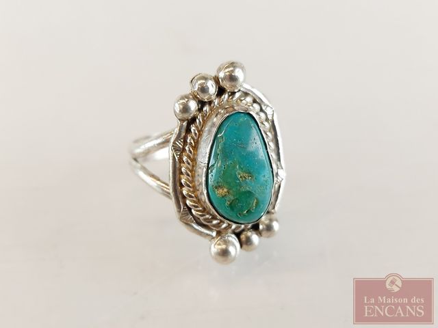 Lot # 108 - Bague amérindienne en argent sertie d'une turquoise taille 7.5 SOLD