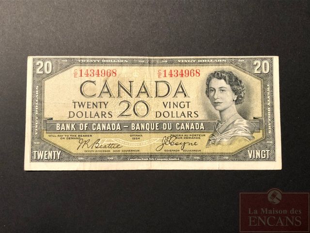 Lot # 188 - Billet de $20 Devil Face 1954 avec erreur de coupe SOLD