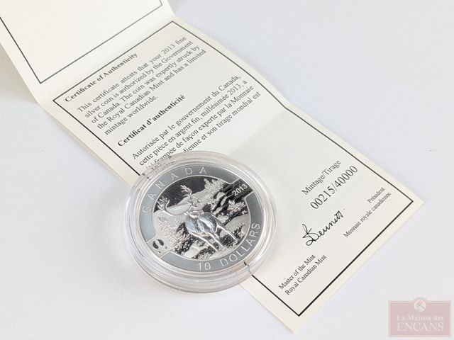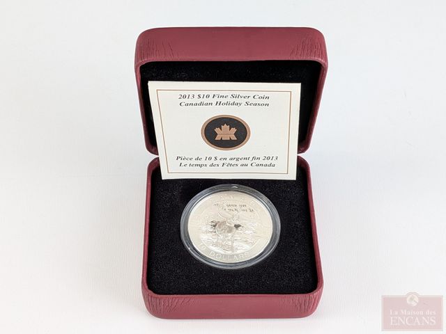 Lot # 108 - Pièce canadienne de dix dollars 2013 Le temps des fêtes au Canada en argent pur 9999, encapsulée, dans sa boite avec certificat, sans taxes