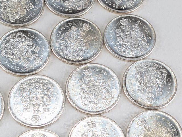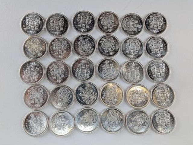 Lot # 215 - Lot de pièces canadiennes de cinquante sous en argent, valeur faciale de 15.5 dollars