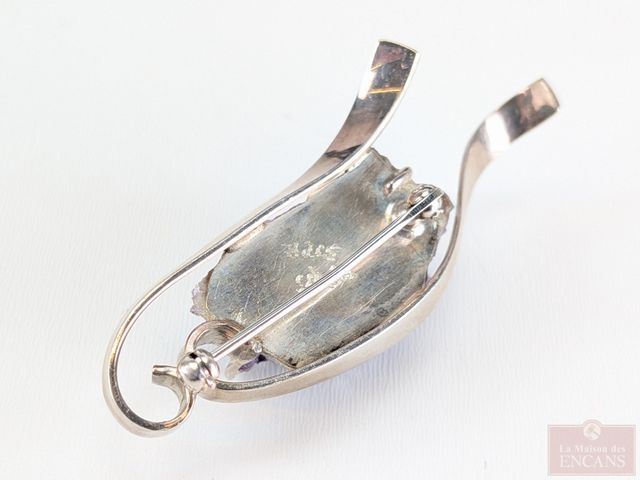 Lot # 96 - Broche en argent sterling avec spécimen d'améthyste, signée Opus et mesurant 2.5 pouces