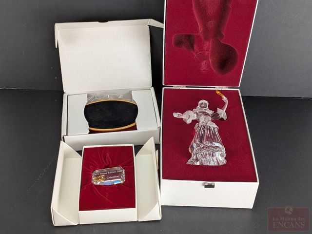 Lot # 48 - Figurine en cristal Swarovski Mascarade Colombine 2000 de la série de trois 1999-2000-2001, mesurant 6.5 pouces, dans sa boite avec certificat, ainsi que sa base et sa plaque (vendus séparément à l'origine)