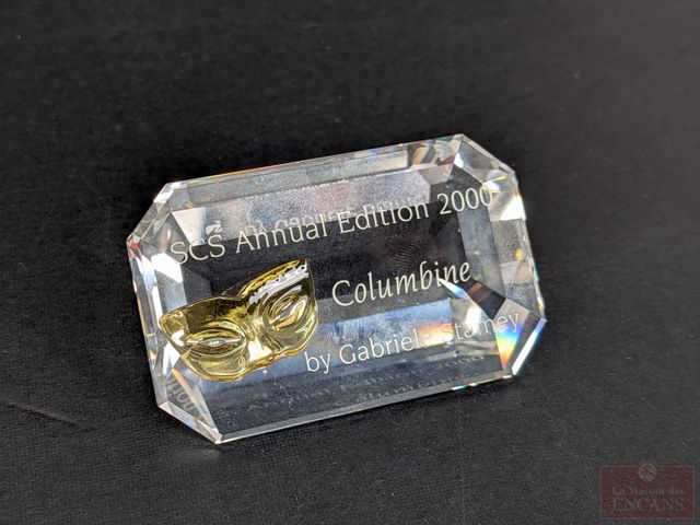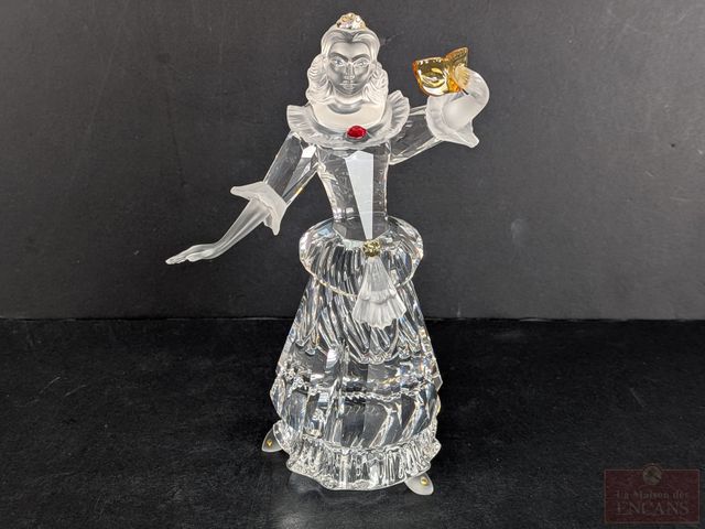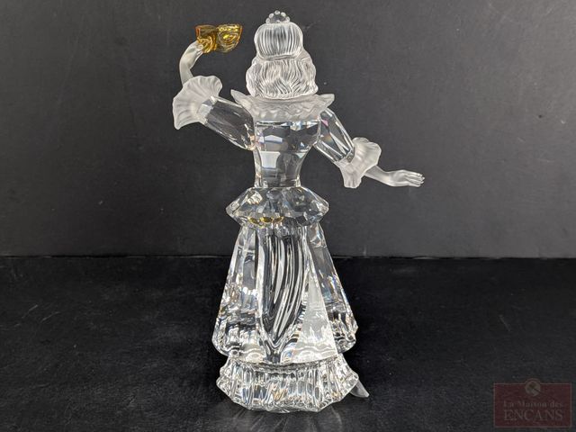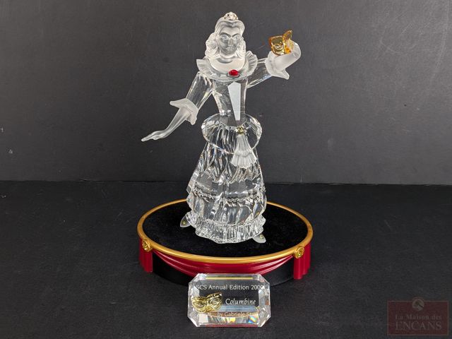 Figurine en cristal Swarovski Mascarade Colombine 2000 de la série de trois 1999-2000-2001, mesurant 6.5 pouces, dans sa boite avec certificat, ainsi que sa base et sa plaque (vendus séparément à l'origine)
