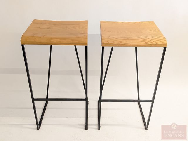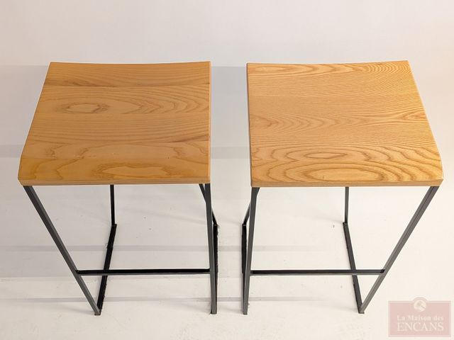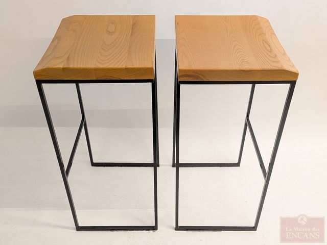 Lot # 10 - Paire de tabourets design style japonais en acier et bois, faits sur-mesure et mesurant 32x14x16 pouces chacun