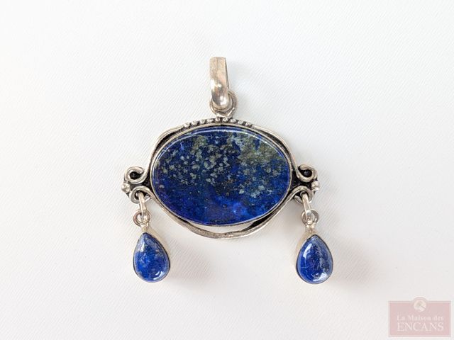 Lot # 234 - Pendentif en argent avec lapis-lazuli, mesurant 1.75 pouces