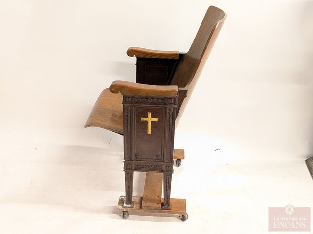 Lot # 25 - Fauteuil d'église fait en chêne et fonte, mesurant 22 pouces de largeur