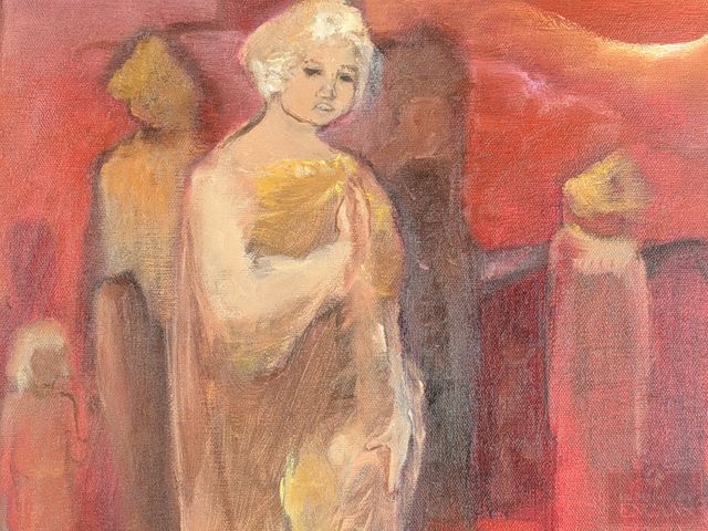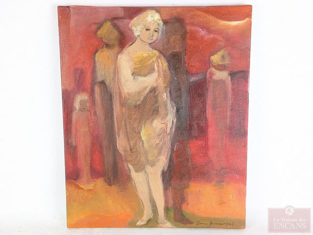 Lot # 57 - Léonie SOMMER- Huile sur toile signée, mesurant 18x15 pouces et titrée La passante