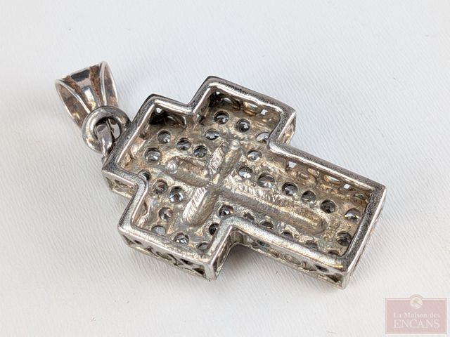 Croix en argent sertie de cristaux, mesurant 2.25 pouces