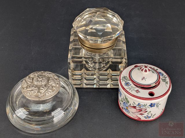 Lot # 44 - Trois encriers, dont un en cristal mesurant 4.75 pouces de hauteur