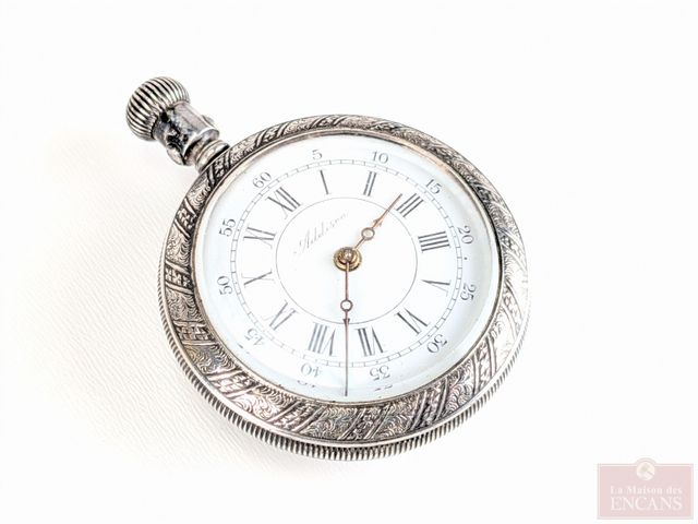 Montre de poche Addison en argent, datant du début du 20eme siècle et mesurant 2 pouces, fonctionnelle