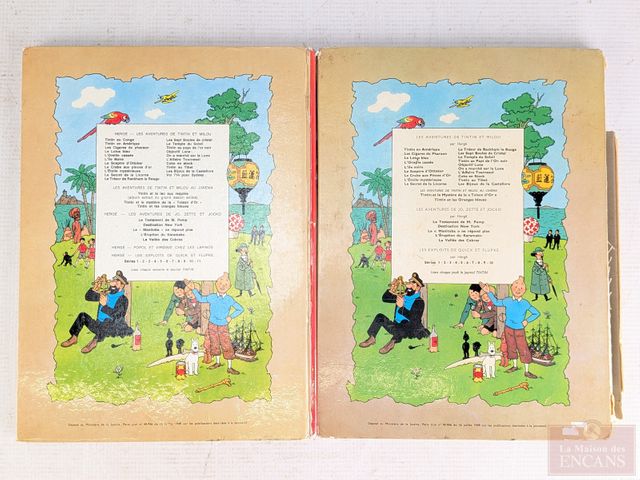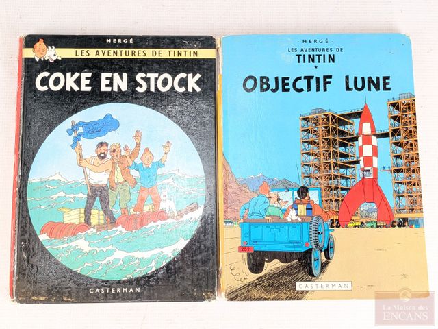 Deux bandes-dessinées vintages Tintin Objectif lune et Coke en stock