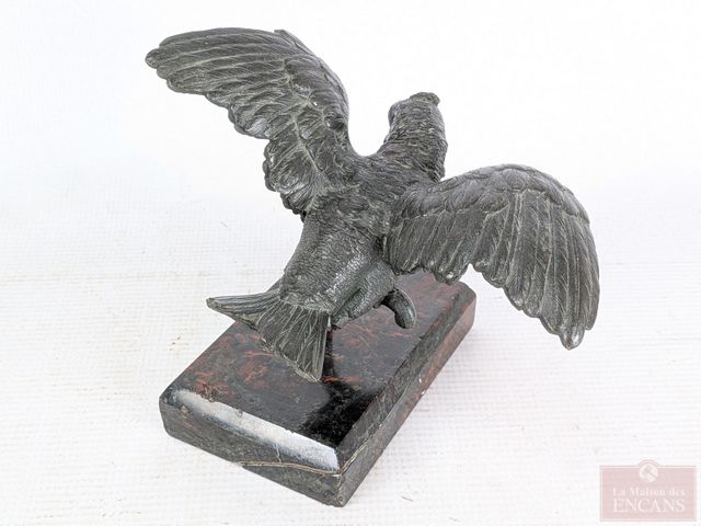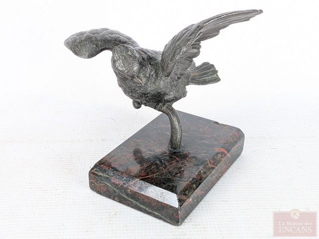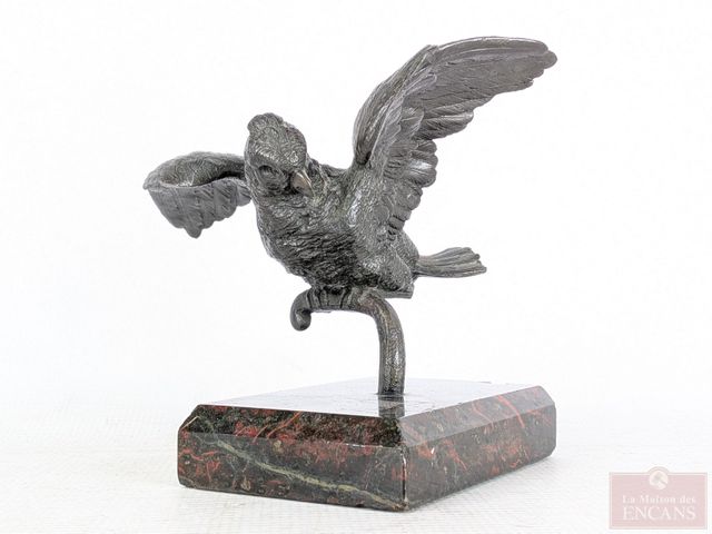 Bronze représentant un oiseau sur sa base en pierre, mesurant 6 pouces de hauteur