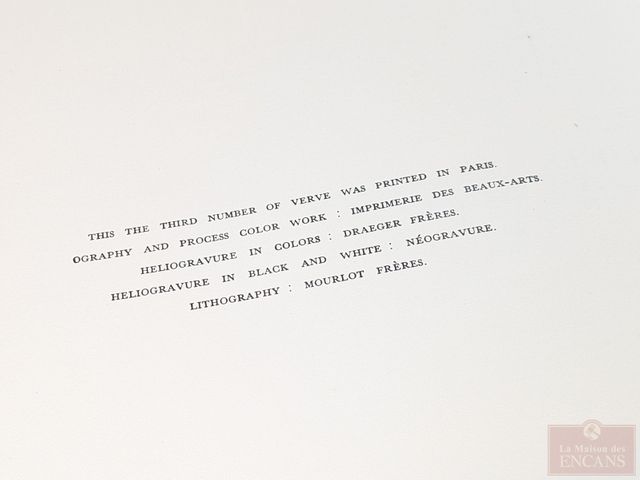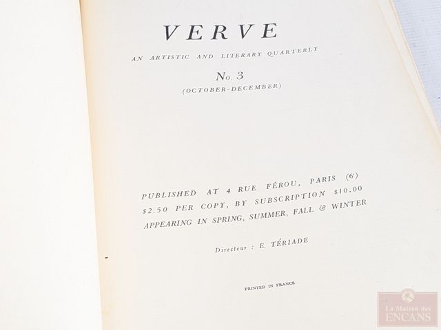 Lot # 51 - Rare livre Verve #3 comprenant lithographies de Rattner et Miro, datant de 1938 et mesurant 14x10.5 pouces