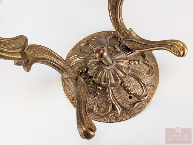Lot # 24 - Paire d'appliques murales en bronze doré de style art-nouveau, mesurant 8.5 pouces de hauteur