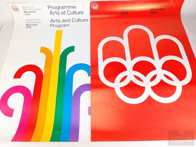 Lot # 133 - Deux affiches officielles des Jeux Olympiques de Montréal par Pierre-Yves Pelletier, Georges Huel et Yvon Laroche, datant de 1976 et mesurant 33x23.5 pouces chacune