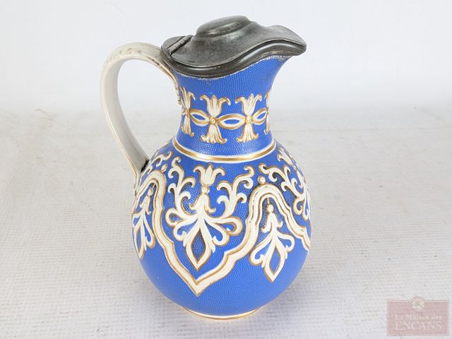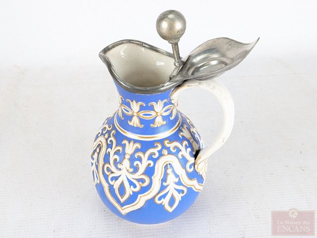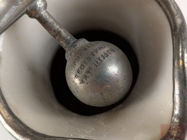Lot # 130 - Ancienne porcelaine anglaise W.B. Cobridge Tyrol, bec en étain avec pendule brevetée, circa 1860, mesurant 7 pouces de hauteur