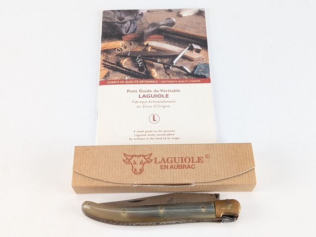 Lot # 222 - Couteau laguiole en Aubrac, mesurant 8.5 pouces au total lorsque déployé, dans sa boite avec livret