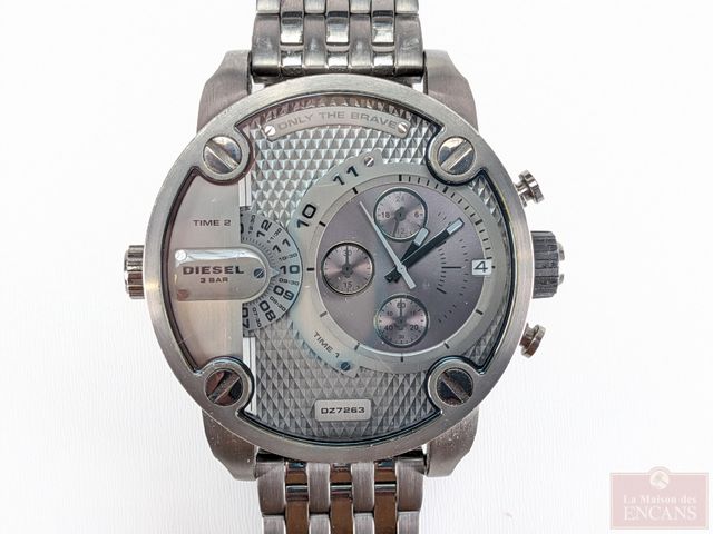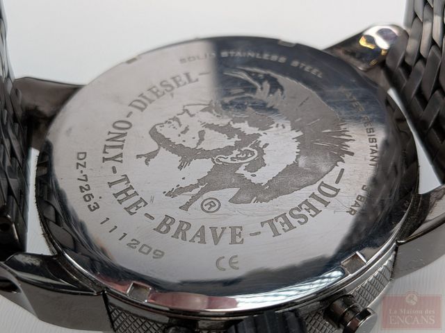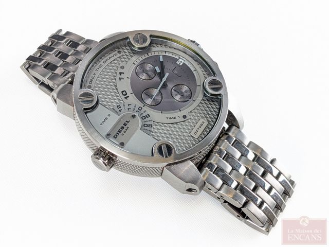 Lot # 80 - Montre Diesel mesurant 60 millimètres avec ses couronnes, dans sa boite avec papiers, payée trois-cent-soixante-dix dollars, fonctionnelle, batterie neuve
