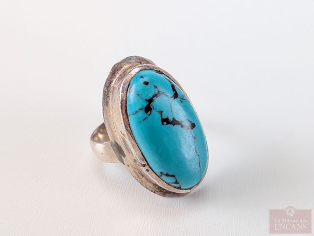 Lot # 214 - Bague en argent sterling sertie d'une turquoise, taille 7, ainsi qu'une bague avec pierres de taille 4.5