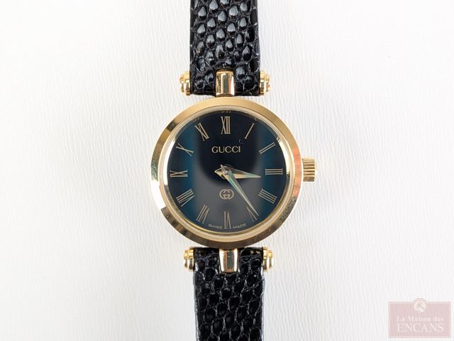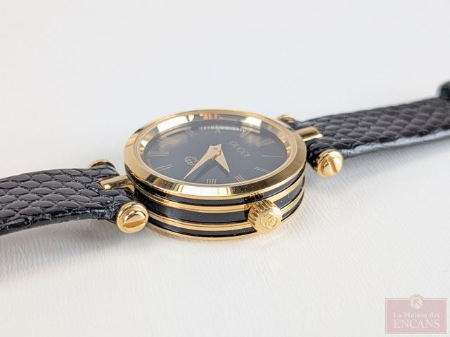 Lot # 226 - Montre vintage pour dame Gucci mesurant 24 millimètres avec sa couronne, avec batterie neuve, dans sa boite, fonctionnelle