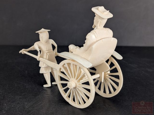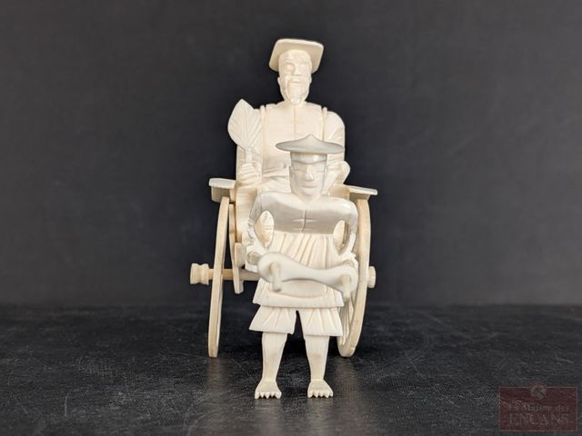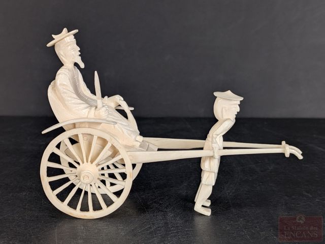 Lot # 125 - Sculpture chinoise sur ivoire, signée, représentant un taxi chinois et mesurant 5 pouces