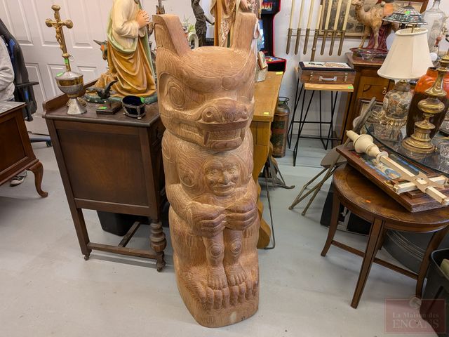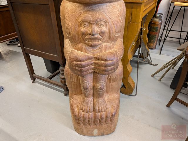 Lot # 181 - Paul JOHNNY- Totem sculpté sur cèdre, signé et mesurant 56.5 pouces de hauteur