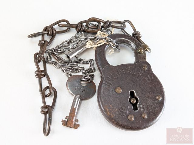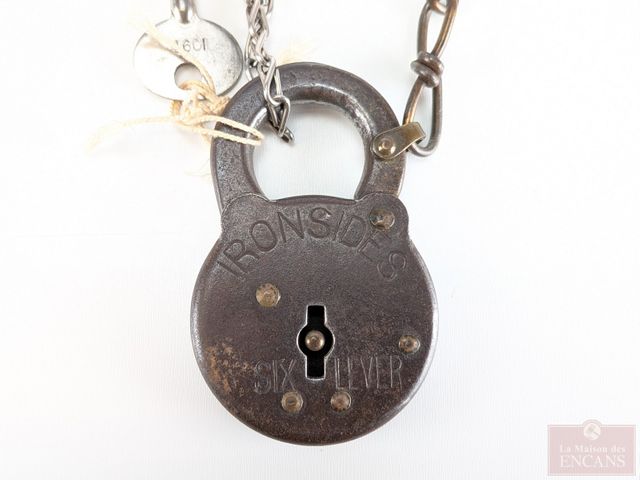 Lot # 69 - Ancien cadenas Ironsides Six Lever avec sa clef, mesurant 3.25 pouces