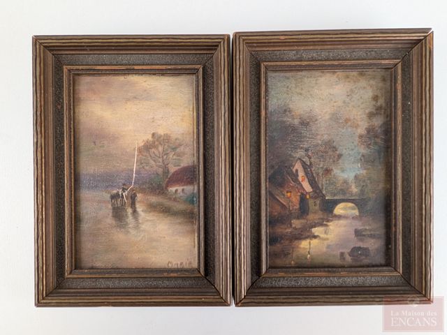 Lot # 23 - Deux huiles sur panneaux signées, mesurant 6x4 pouces chacune