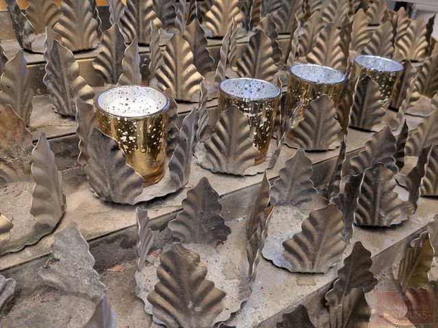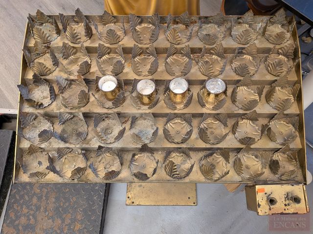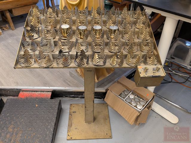 Lot # 240 - Support à lampions en métal avec ses lampons et boite à voeux, mesurant 29.5 pouces de largeur