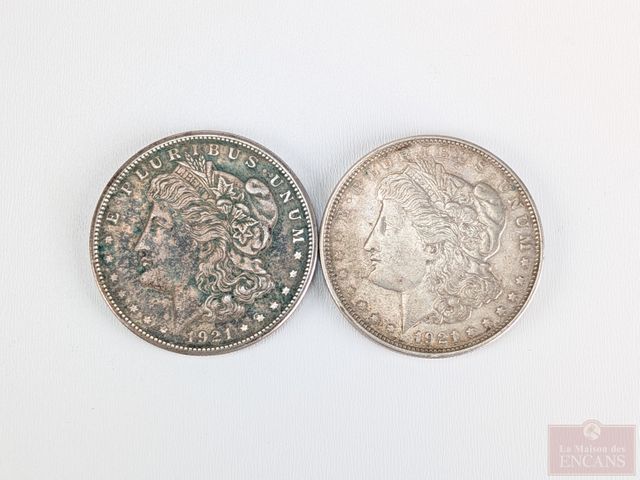Lot # 183 - Quatre pièces américaines d'un dollar Morgan Dollar en argent, dont trois 1921 et une 1887