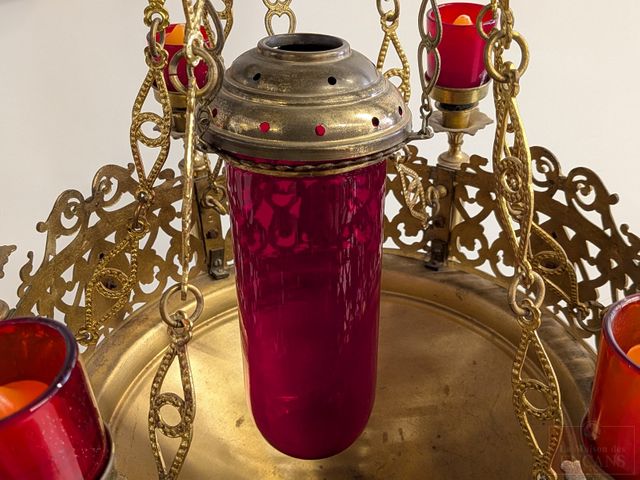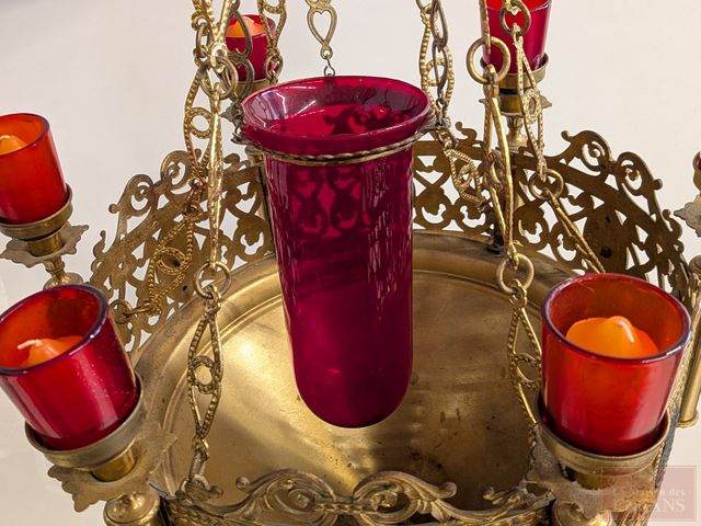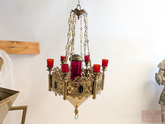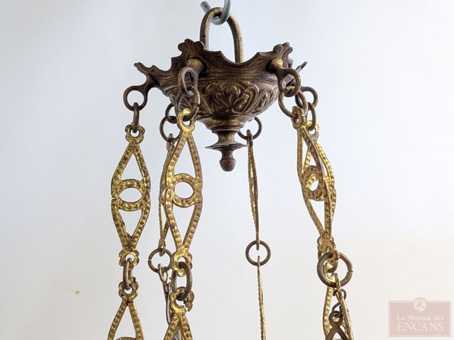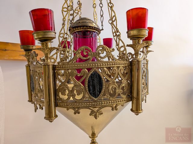 Lot # 62 - Exceptionnelle lampe de sanctuaire en laiton doré, datant du début du 20eme siècle et mesurant 35 pouces de hauteur