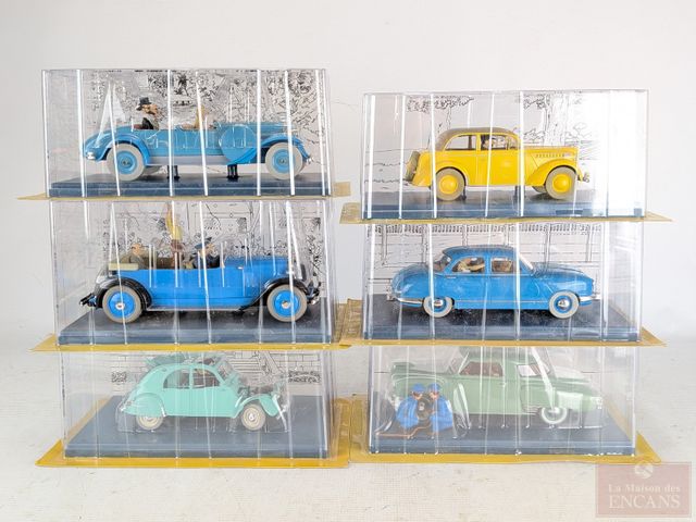 Lot # 61 - Gros lot de voitures de collection Tintin échelle 1/24, scellés avec leurs fascicules, se détaillaient à plus de soixante dollars chacune