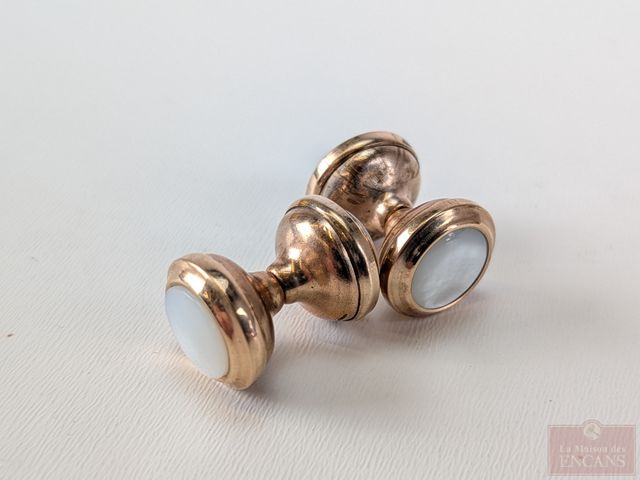 Lot # 213 - Paire de boutons de col en or 10k, mesurant 0.75 pouces