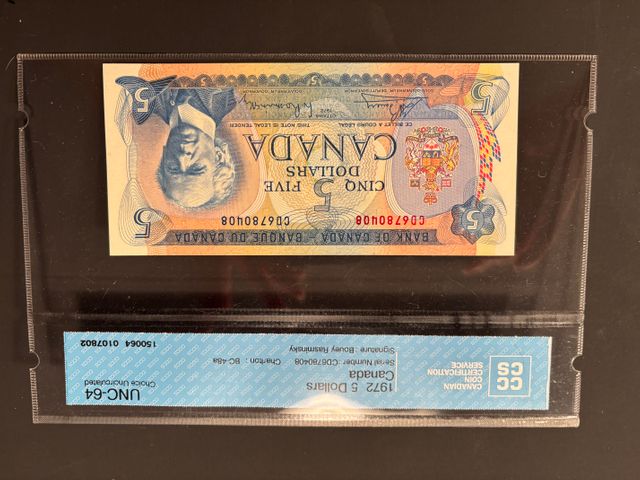 Lot # 101 - Billet de $5 1972 certifié par CCCS UNC-64