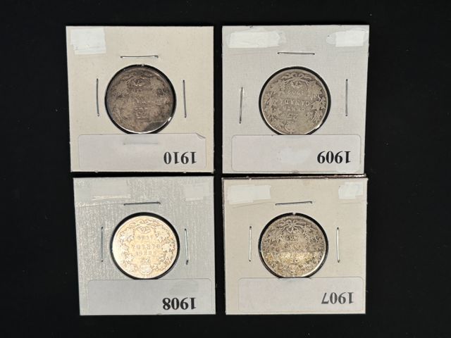 Lot # 171 - 4 Pièces de 25 Cents 1907-1908-1909-1910 en Argent